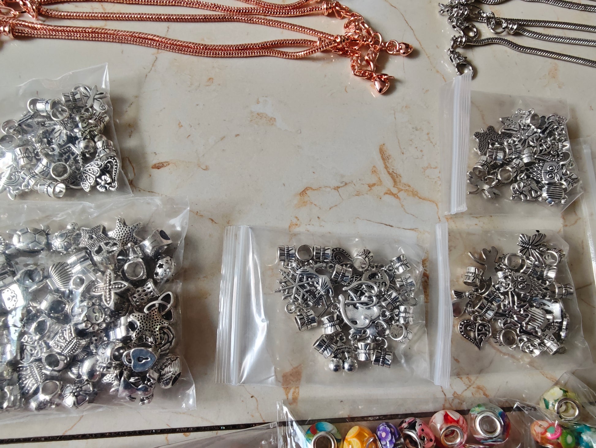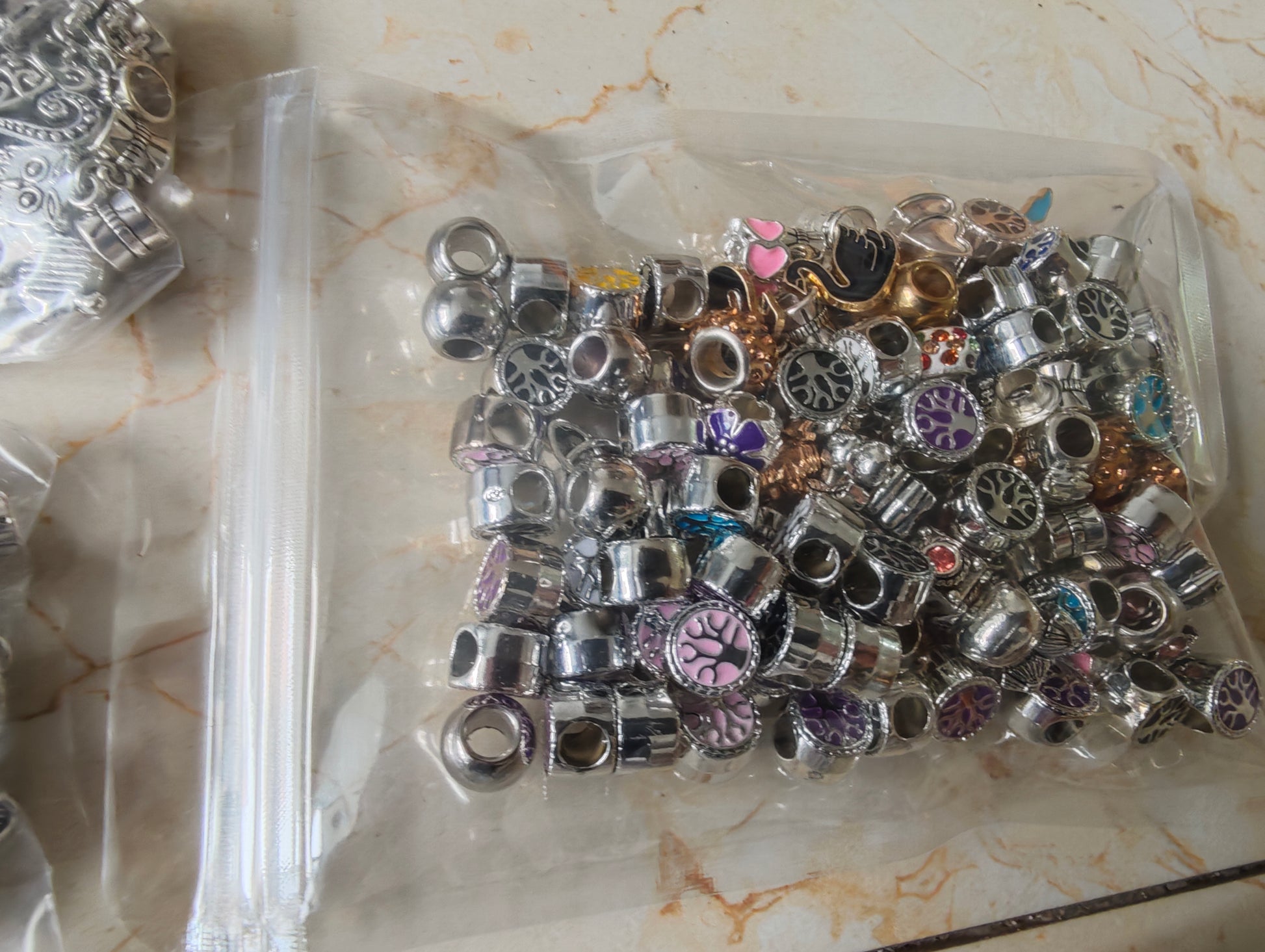 Over 1000 beautiful Dora beads and metal pendants in separate bags with various shapes. And also together with 40 pieces of plain bracelets for DIY.